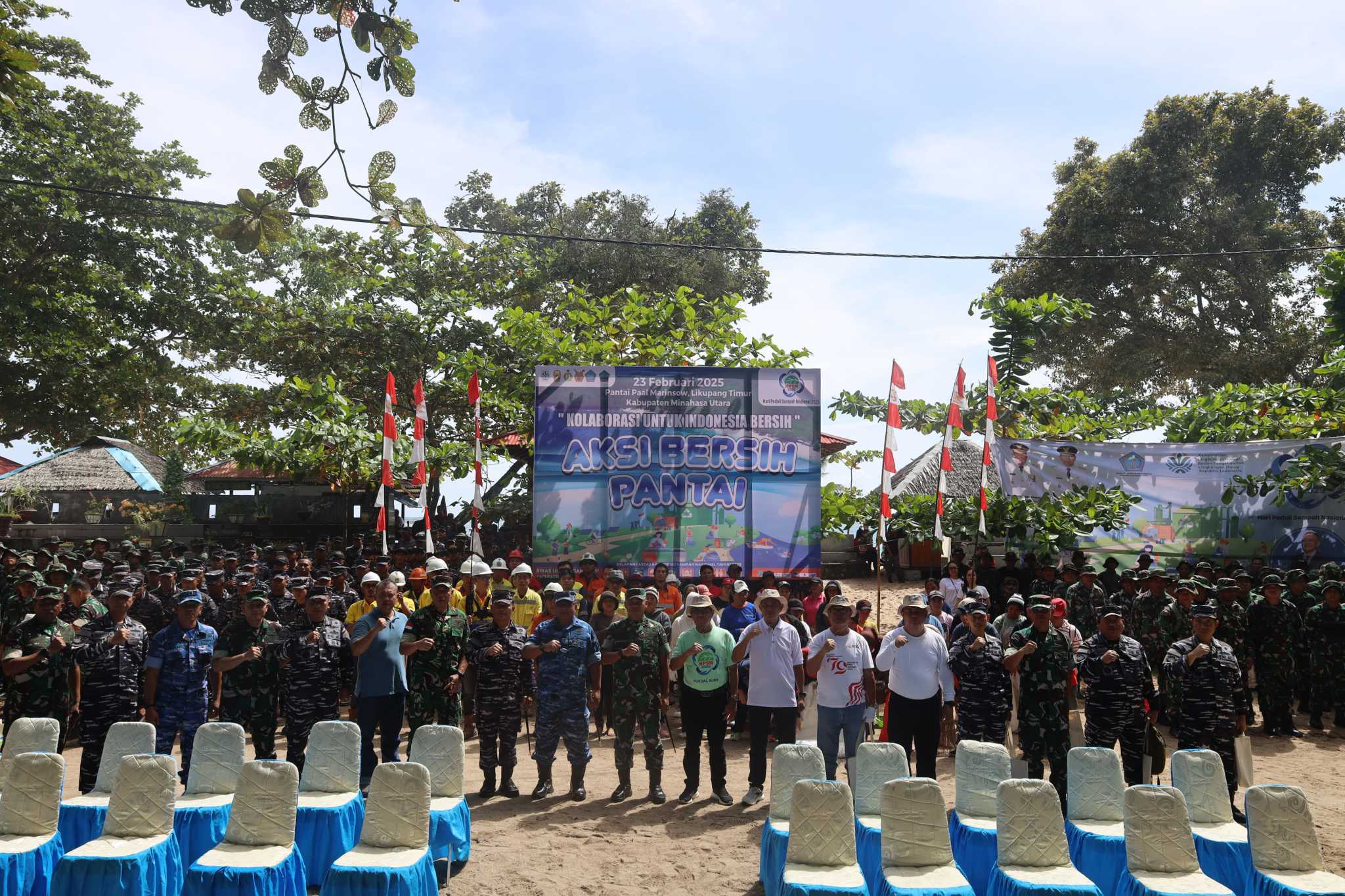 Manado, Sulut – Waspada24.com, Dalam rangka Hari Peduli Sampah Nasional (HPSN) 2025, Danlantamal VIII Laksamana Pertama TNI May Franky Pasuna Sihombing, CHRMP, pada Minggu (23/02/25) mengikuti kegiatan bersih-bersih pantai di Pantai Paal Likupang, Sulawesi Utara. Kegiatan ini dilaksanakan secara serentak di berbagai wilayah pantai di Indonesia.