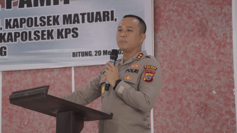 Bitung, Sulut | Waspada24.com, Kapolres Bitung, AKBP Albert Zai., S.I.K., M.H, menunjukkan toleransi tinggi saat memberikan sambutan kenal pamit pejabat baru dan lama di Aula Tribrata Aspol Pinokalan. Ketika azan sholat Zuhur berkumandang di Masjid As – Salam Aspol. Selasa (20/05/25).