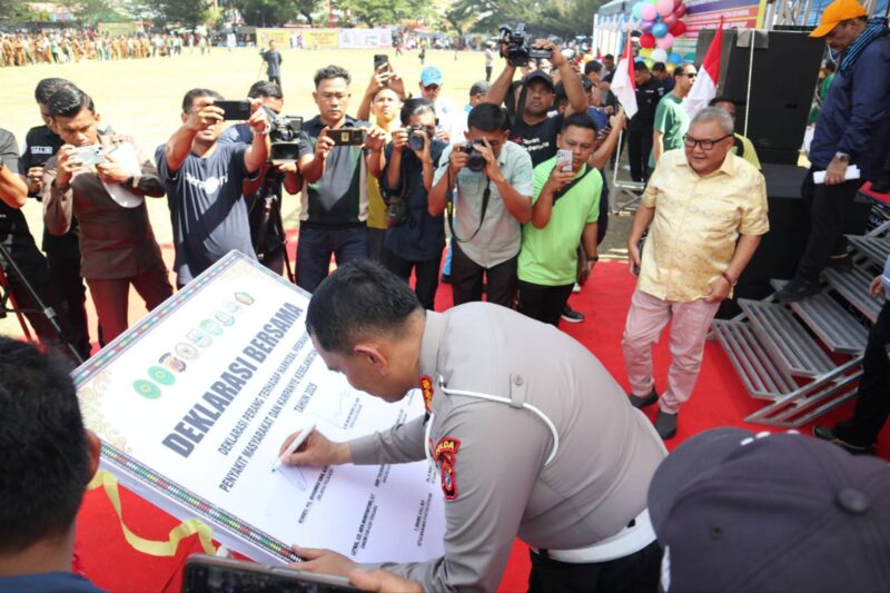 Apel deklarasi ditandai dengan pembacaan dan penandatanganan naskah deklarasi kampanye keselamatan berlalu lintas tahun 2025.