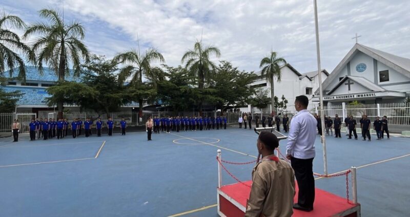 Medan – Rumah Tahanan Negara (Rutan) Kelas I Medan Kanwil Ditjenpas Sumut menggelar upacara Kesadaran Berbangsa dan Bernegara di Lapangan Upacara Rutan Kelas I Medan. Rabu (18/6). Upacara ini diikuti oleh seluruh warga binaan dan petugas Rutan, dengan melibatkan warga binaan sebagai petugas upacara.