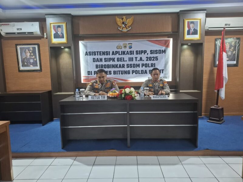 Bitung, Sulut | Waspada24.com – Tim asistensi Robinkar SSDM Polri dipimpin AKBP Rizky Tri Putra Erryka Adi Wijaya, S.I.K., M.H. hadiri kegiatan Asistensi Aplikasi SIPP, SISDM, dan SIP Gel III Tahun 2025 yang digelar Polres Bitung selaku Tuan rumah. Kamis (19/06/25).