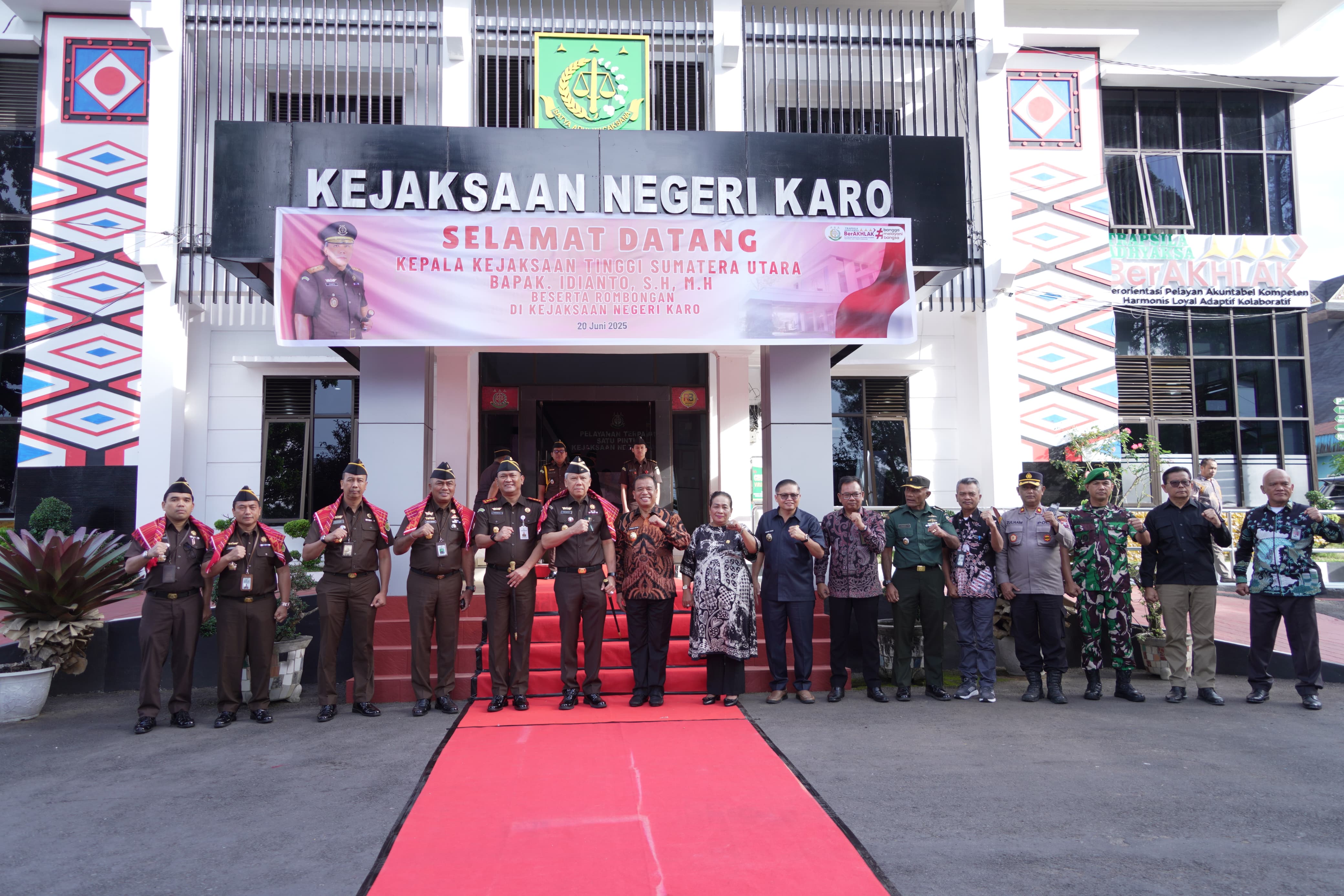 Karo | Waspada24.com – Kunjungan kerja Kepala Kejaksaan Tinggi Sumatra Utara (Kajatisu) Idianto, SH., MH., ke Tanah Karo di sambut Bupati Karo, Brigjen Pol (Purn) Dr. dr. Antonius Ginting, Sp.OG., M.Kes., bersama jajaran Forkopimda di Kantor Kejaksaan Negri Karo, Jumat (20/06/2025).