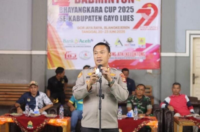 Blangkejeren | Dalam rangka menyambut Hari Bhayangkara ke-79 yang jatuh pada 1 Juli mendatang, Kepolisian Resor (Polres) Gayo Lues menyelenggarakan Turnamen Badminton Bhayangkara Cup tingkat kabupaten. Kegiatan pembukaan turnamen ini digelar dengan penuh semangat dan secara resmi dibuka oleh Kapolres Gayo Lues AKBP Hyrowo, S.I.K., di Gedung Olahraga (GOR) Gayo Lues, Kecamatan Blangkejeren, Kabupaten Gayo Lues, Jumat sore, 20 Juni 2025.