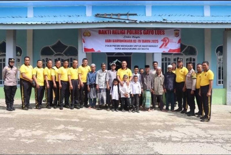 Blangkejeren – Dalam rangka menyambut dan memperingati Hari Bhayangkara ke-79 Tahun 2025, Kepolisian Resor (Polres) Gayo Lues menggelar kegiatan Bakti Religi sebagai wujud nyata kedekatan institusi Polri dengan masyarakat. Kegiatan ini berlangsung pada Jumat, 20 Juni 2025, dengan melibatkan jajaran personel kepolisian dan masyarakat dalam aksi gotong royong membersihkan dua rumah ibadah, yaitu Masjid Nurul Huda di Desa Ume Lah dan Masjid Abu Abas di Desa Kutebukit, Kecamatan Blangpegayon.
