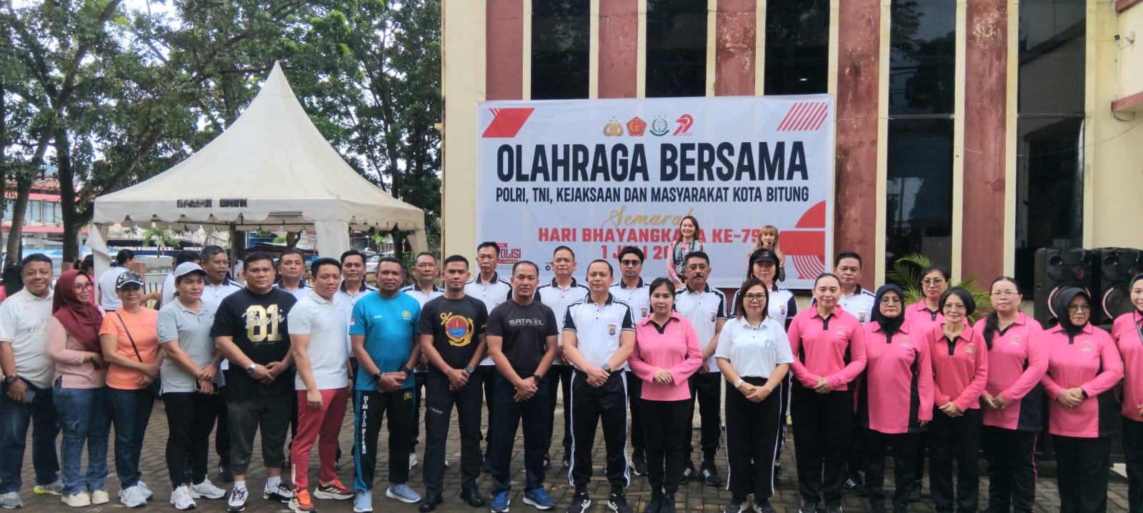 Bitung, Sulut | Waspada24.com Kegiatan Olahraga bersama dalam menyambut Hari Bhayangkara Ke-79 yang jatuh pada tanggal 1 Juli 2025 melibatkan Polres Bitung, TNI, Kejaksaan, Pengadilan, juga Pemkot Bitung serta para masyarakat Kota Cakalang yang berlangsung di Mapolsek Maesa. Rabu (25/06/25).