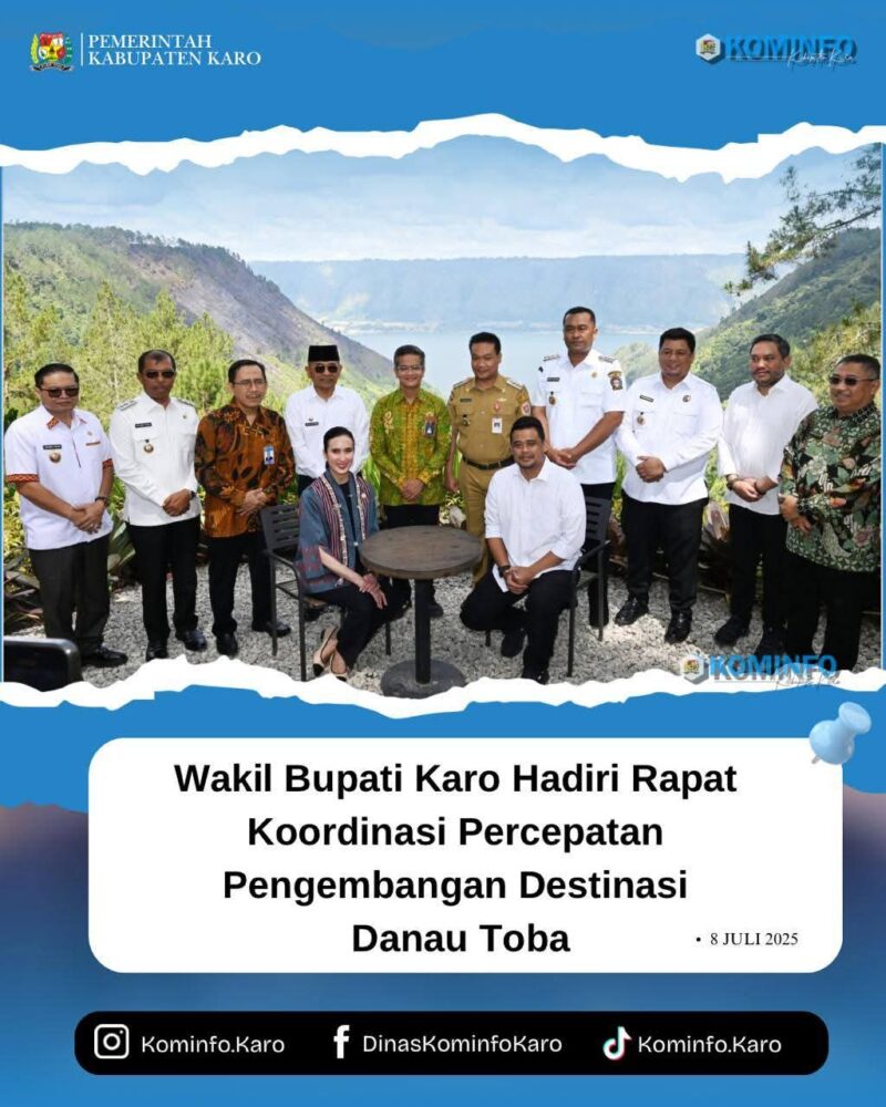 Ajibata, Toba | Waspada24.com — Dalam rangka percepatan pembangunan Destinasi Pariwisata Prioritas (DPP) Danau Toba, Wakil Bupati Karo, Komando Tarigan, S.P., menghadiri Rapat Koordinasi Nasional yang diselenggarakan oleh Kementerian Pariwisata Republik Indonesia melalui Deputi Bidang Pengembangan Destinasi dan Infrastruktur, pada Selasa, (8/7) bertempat di Nomaddict Café, The Kaldera Toba, Kecamatan Ajibata, Kabupaten Toba, Provinsi Sumatera Utara.