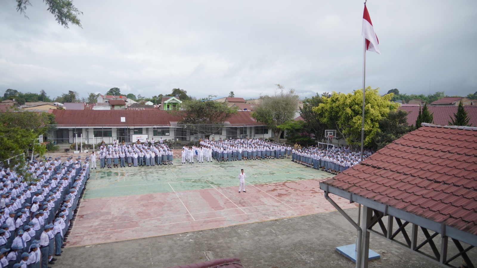 Kabanjahe | Waspada24.com — Bupati Karo, Brigjen. Pol (Purn) Dr. dr. Antonius Ginting, SP.OG, M.Kes, mengajak seluruh pemangku kepentingan untuk membangun sinergi dan kolaborasi dalam meningkatkan mutu pendidikan di Kabupaten Karo menuju Indonesia Emas 2045. Hal ini disampaikannya dalam sambutan saat menjadi pembina upacara bendera pada hari pertama masuk sekolah tahun ajaran 2025-2026 di SMA Negeri 1 Kabanjahe, Senin, (14/7/2025).
