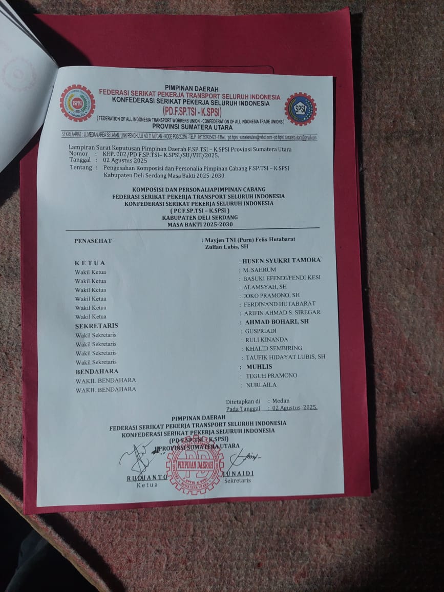 Dengan kepengurusan baru ini, organisasi pekerja transportasi Deli Serdang tersebut menegaskan komitmennya untuk memperjuangkan kesejahteraan anggotanya serta memperkuat hubungan industrial yang harmonis.