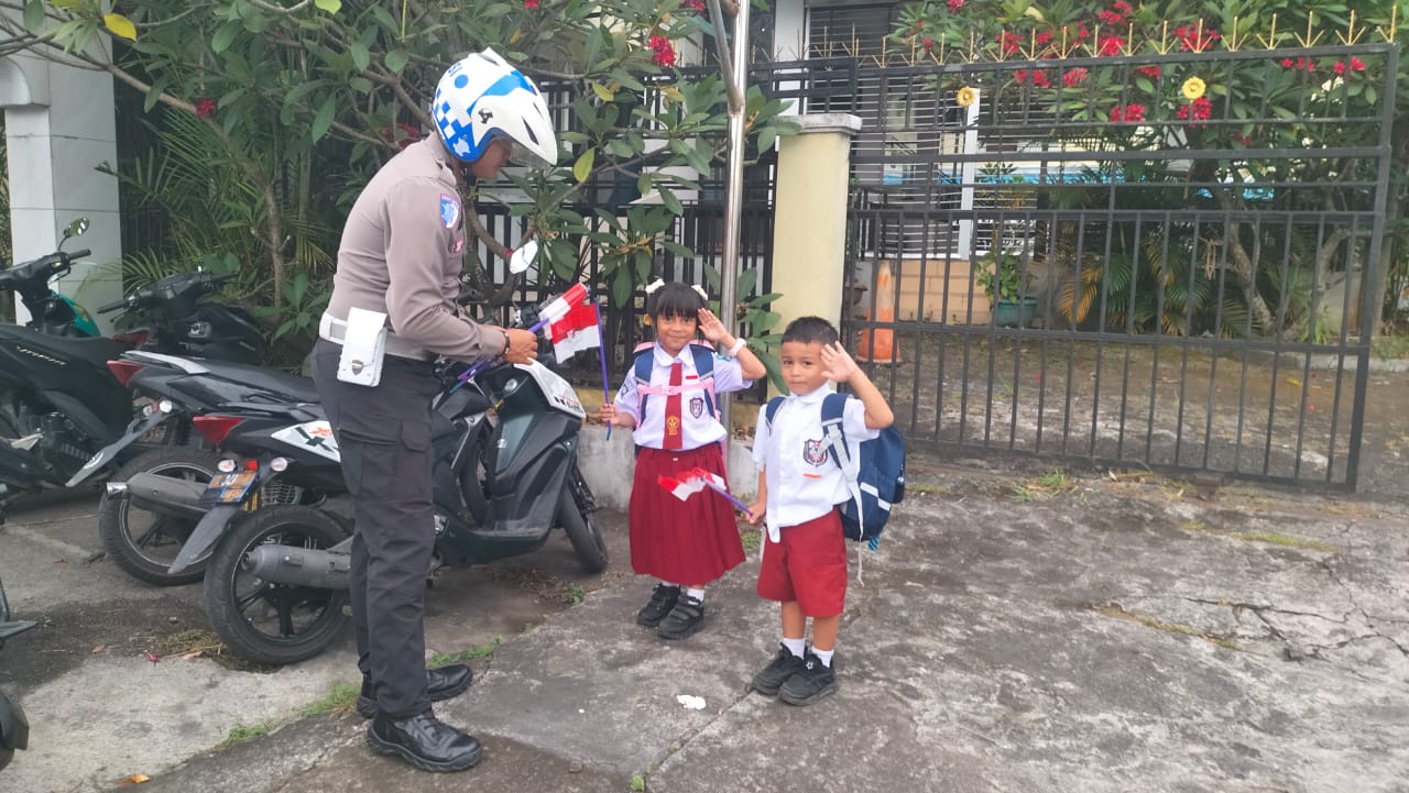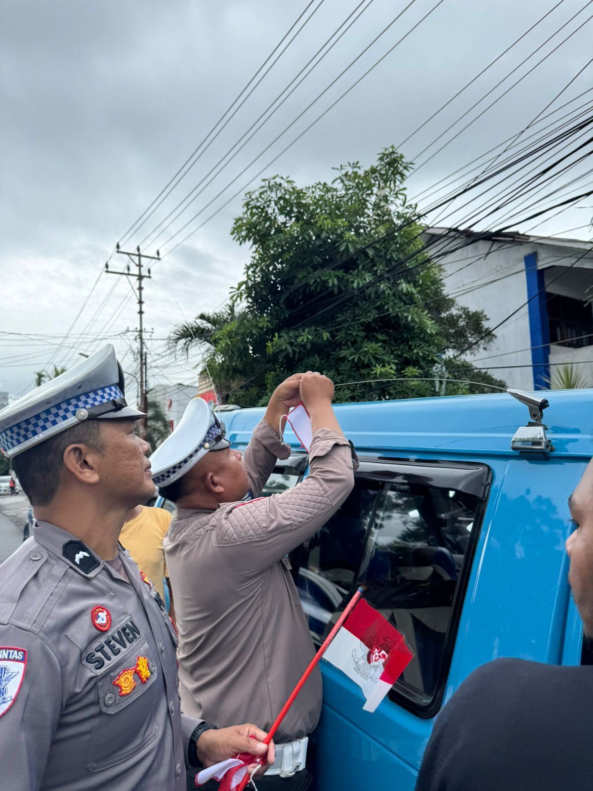 Bitung, Sulut | Waspada24.com – Memupuk semangat kebangsaan jelang peringatan Hari Kemerdekaan RI ke-80, Satuan Lalu Lintas (Satlantas) Polres Bitung membagikan 100 bendera Merah Putih kepada pengendara. Kamis (07/08/25).