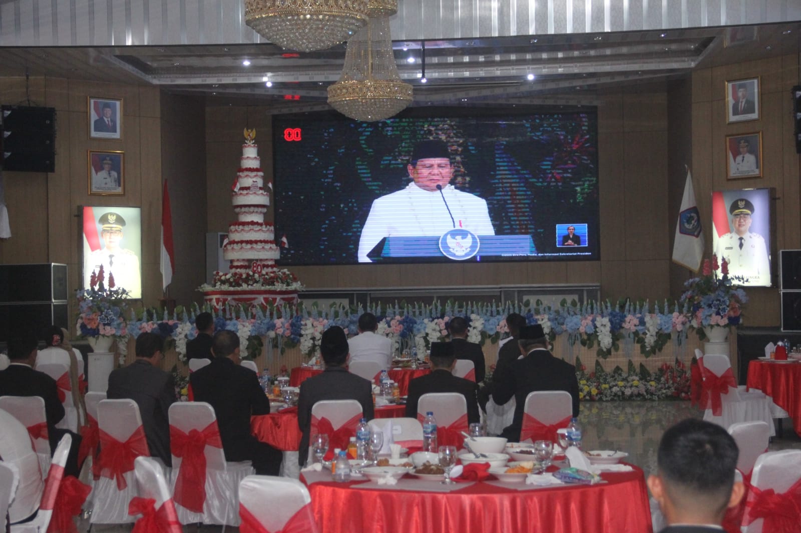 Dengan khidmat, seluruh peserta mengikuti detik-detik pembacaan teks Proklamasi, meneguhkan komitmen menjaga nilai-nilai perjuangan para pahlawan.