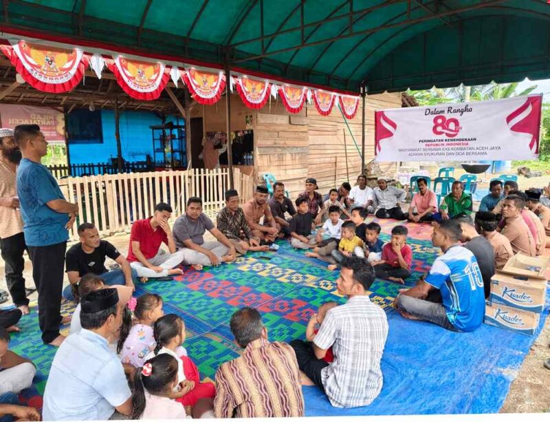 ACEH JAYA | Tokoh Exs Kombatan GAM Kabupaten Aceh Jaya Wan Khairunas alias Wan Jambang bersama dengan masyarakat Kecamatan Teunom dan Pasir Raya menggelar acara syukuran di Hari ulang Tahun Kemerdekan Republik Indonesia yang ke 80 bertempat Digampong Alue Krueng, Kecamatan Pasir Raya, Kabupaten Aceh Jaya, minggu (17/8/2025).