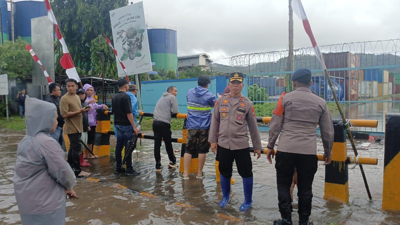 Diketahui, Kapolres Bitung, AKBP Albert Zai, S.I.K., M.H., turun langsung ke lapangan memantau situasi dan memimpin upaya penanganan.