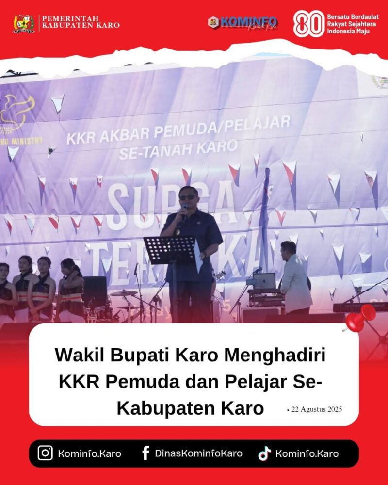 Kabanjahe | Waspada24.com – Wakil Bupati Karo Komando Tarigan, S.P, menghadiri KKR Pemuda dan Pelajar Se-Kabupaten Karo Tahun 2025 yang dilaksanakan pada tanggal 22 Agutus 2025 di Stadion Samura.