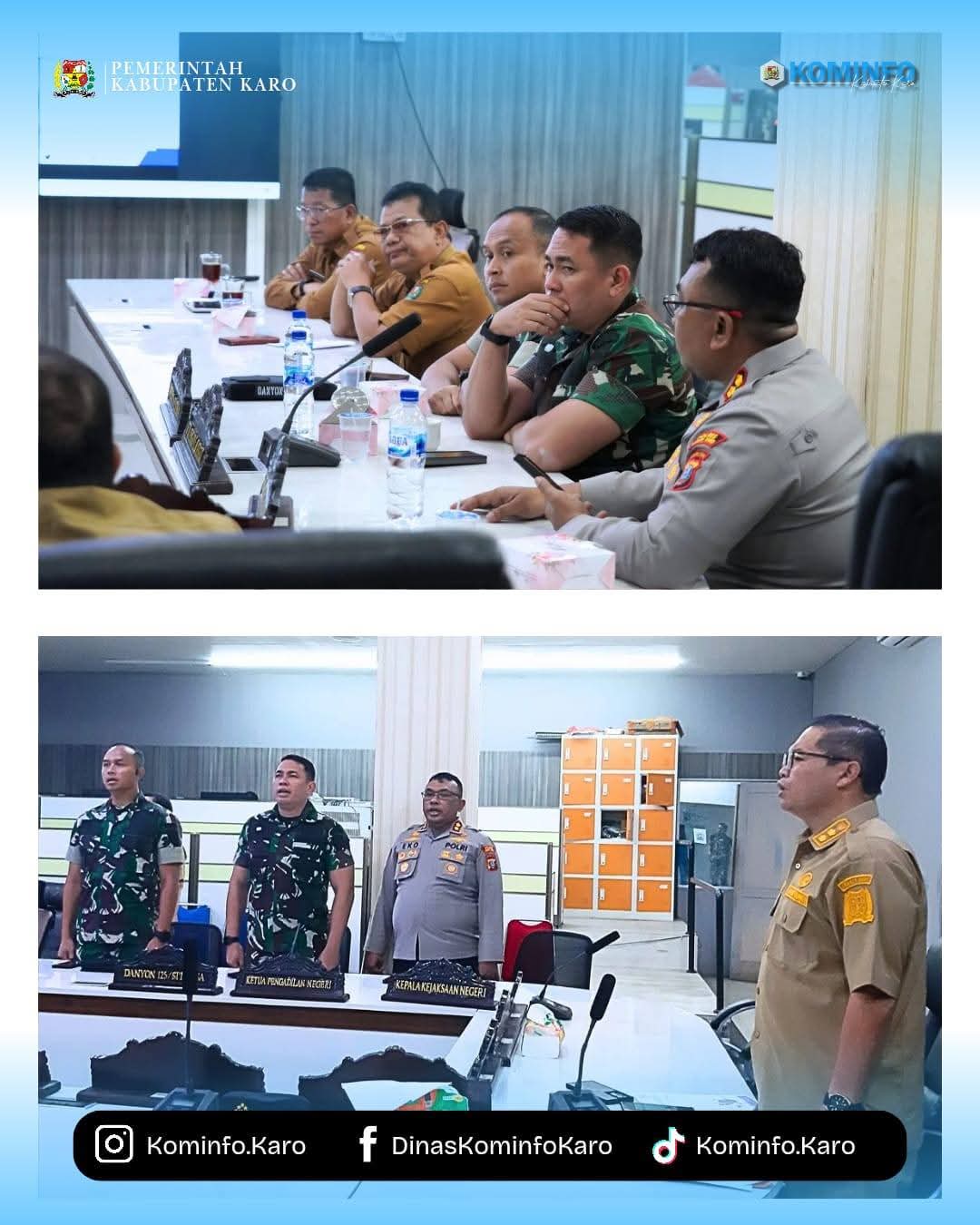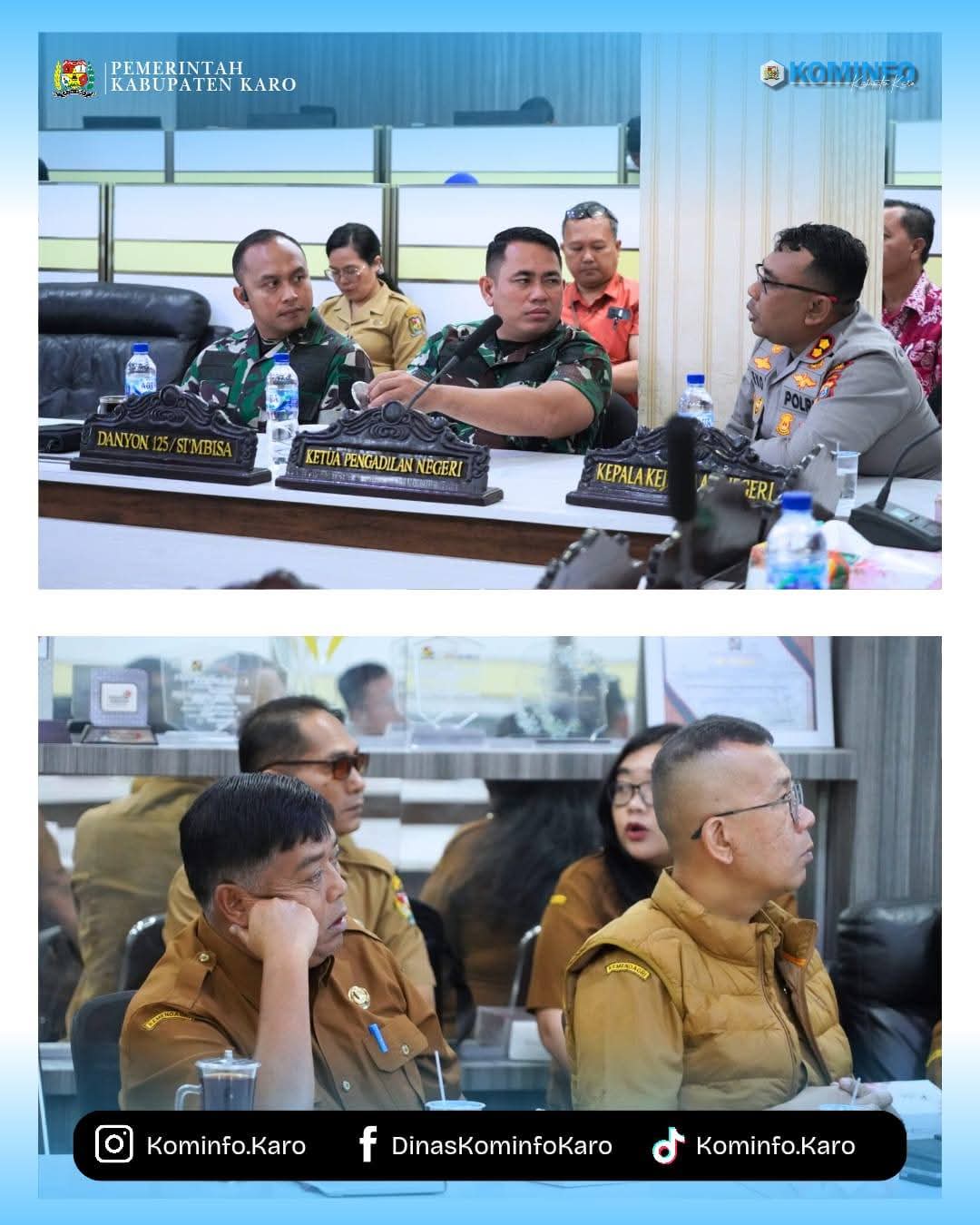 Kabanjahe | Waspada24.com – Forkopimda Kabupaten Karo bersama Danyon 125 Simbisa Karo, Haris Nur Priatno., Asisten Perekonomian dan Pembangunan, Drs. Dapatkita Sinulingga., OPD terkait, Kepala BPS Kab.Karo, Oliver Bobby Reynold Simarmata., mengikuti Rapat Perkembangan Situasi Terkini yang dirangkaikan dengan Pengendalian Inflasi Tahun 2025 secara daring di ruang rapat KCC Kantor Bupati Karo pada Selasa (2/9/2025)