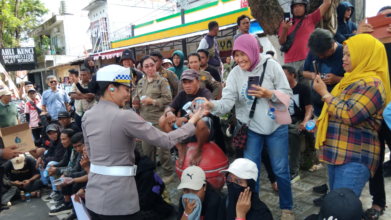 Bukan Senjata, Kapolres Bitung Sambut Pendemo dengan Kue dan Air Mineral
