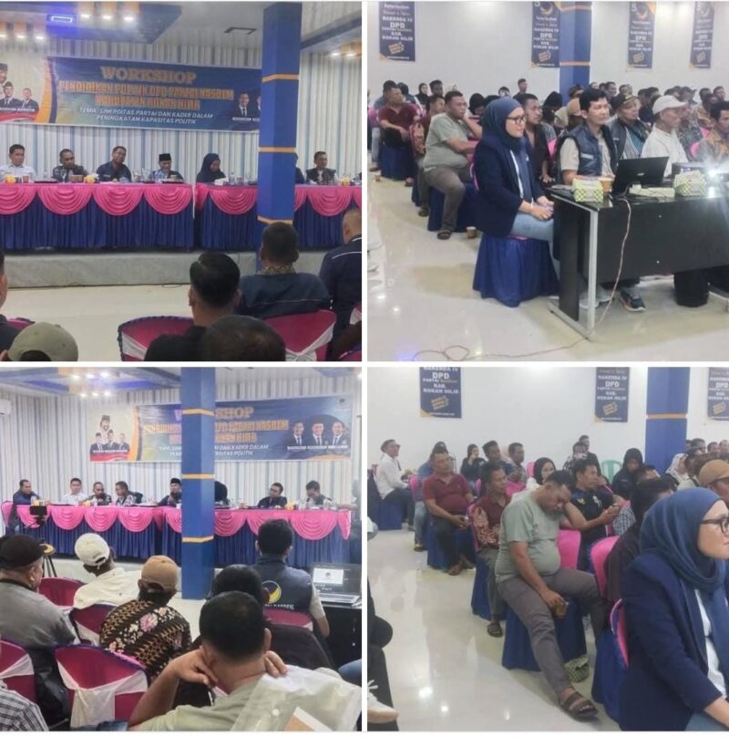 Waspada24.com Rokan Hilir – Dewan Pimpinan Daerah (DPD) Partai NasDem Kabupaten Rokan Hilir menggelar Workshop Pendidikan Politik yang dihadiri oleh pengurus, kader, dan perwakilan DPC se-Kabupaten Rokan Hilir. Acara berlangsung dengan penuh khidmat dan semangat kebersamaan, Minggu (28/09/2025).