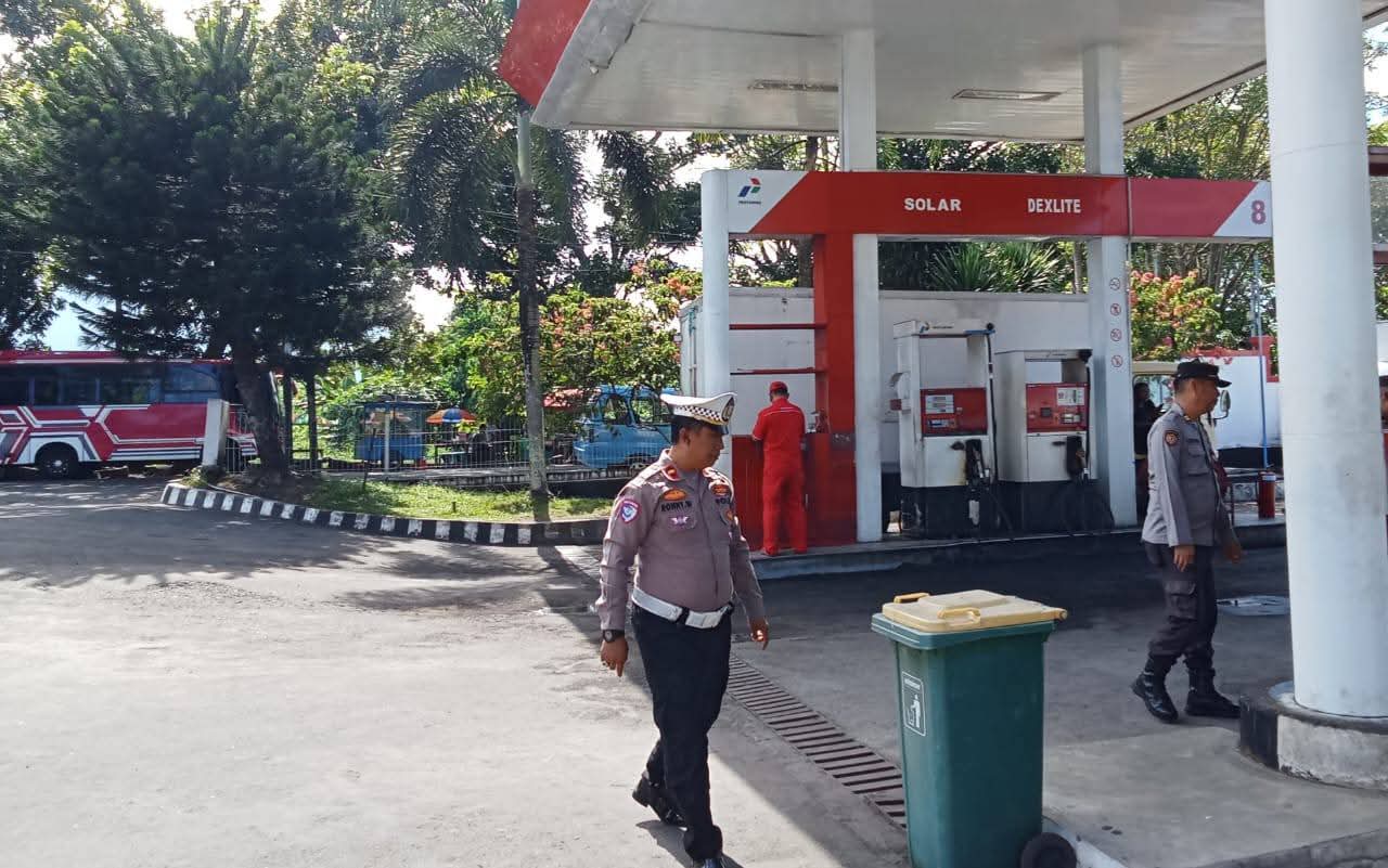 Dipimpin Panit Lantas IPDA Ronny Wangkanusa selaku Perwira Pengendali (Padal) piket, tim menyambangi SPBU Tangkoko, SPBU BCL, dan SPBU Girian Permai.