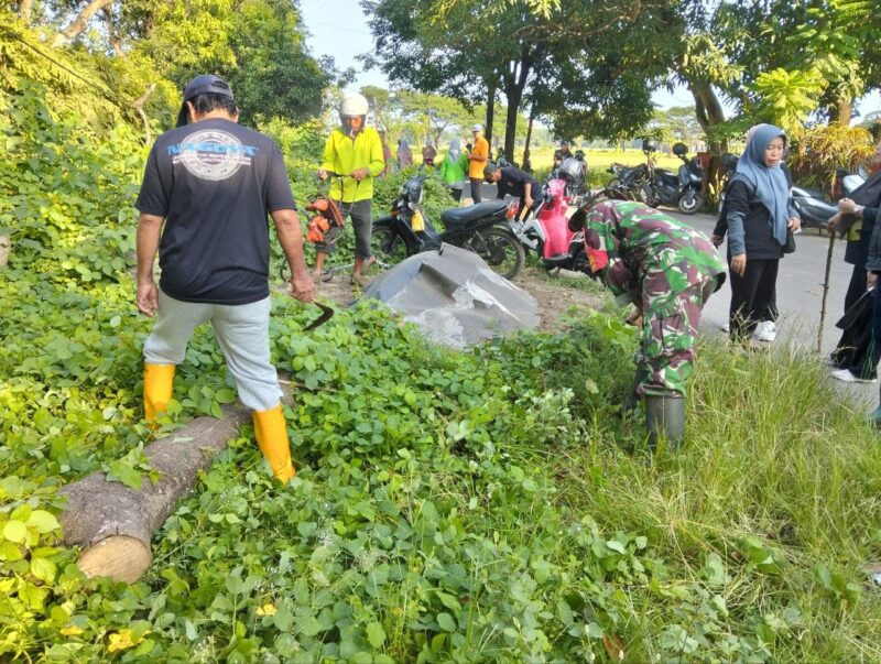 TAKALAR – waspada24.com | Personel TNI dari Koramil 1426-07/Pattallassang, Kodim 1426/Takalar, bersama masyarakat melaksanakan kerja bakti membersihkan rumput liar di pinggir kiri kanan jalan dan selokan di Kelurahan Bajeng Kecamatan Pattallassang, Kabupaten Takalar. Jum’at, (19/12/2025).