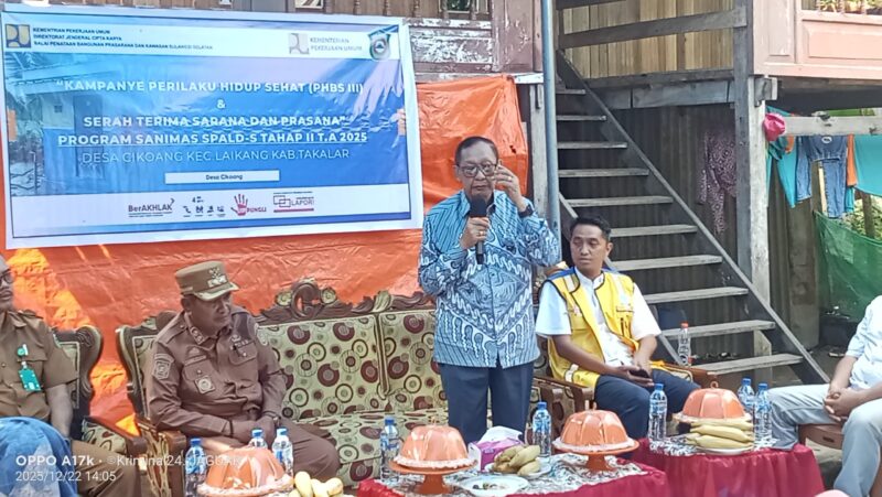 Takalar – waspada24.com | Anggota DPR RI Fraksi Partai Golkar, H. Hamka B. Kady, secara resmij menyerahkan prasarana Program Sanitasi Berbasis Masyarakat (Sanimas) SPALD-S Tahap II Tahun Anggaran 2025 kepada warga Desa Cikoang, Kecamatan Laikang, Kabupaten Takalar, Senin (22/12/2025).