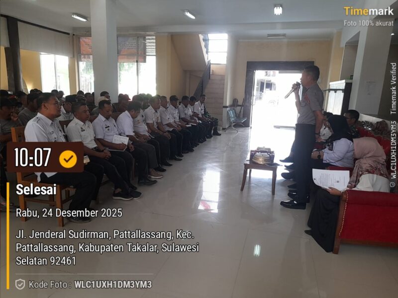 Takalar – Waspada24.com |  Menjelang perayaan Hari Raya Natal dan Tahun Baru, Pemerintah Kecamatan Pattallassang menggelar Rapat Koordinasi Lintas Sektor sebagai langkah antisipatif menjaga stabilitas keamanan dan ketertiban masyarakat. Rapat tersebut berlangsung pada Rabu (24/12/2025) di Aula Kantor Kecamatan Pattallassang, Kabupaten Takalar, dan dipimpin langsung oleh Camat Pattallassang bersama Kapolsek Pattallassang.