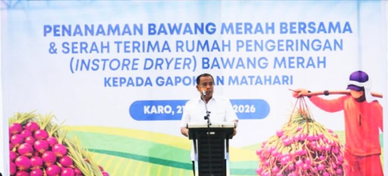 KARO | Waspada24.com – Bupati Karo, Brigjen Pol (Purn) Dr.dr. Antonius Ginting, Sp.OG., M.Kes, menghadiri acara seremoni serah terima bantuan Instore Dryer (Rumah Pengering) dan Gerakan Penanaman Bawang Merah yang dipusatkan di Desa Selandi, Kecamatan Payung, Rabu (21/01/2026).