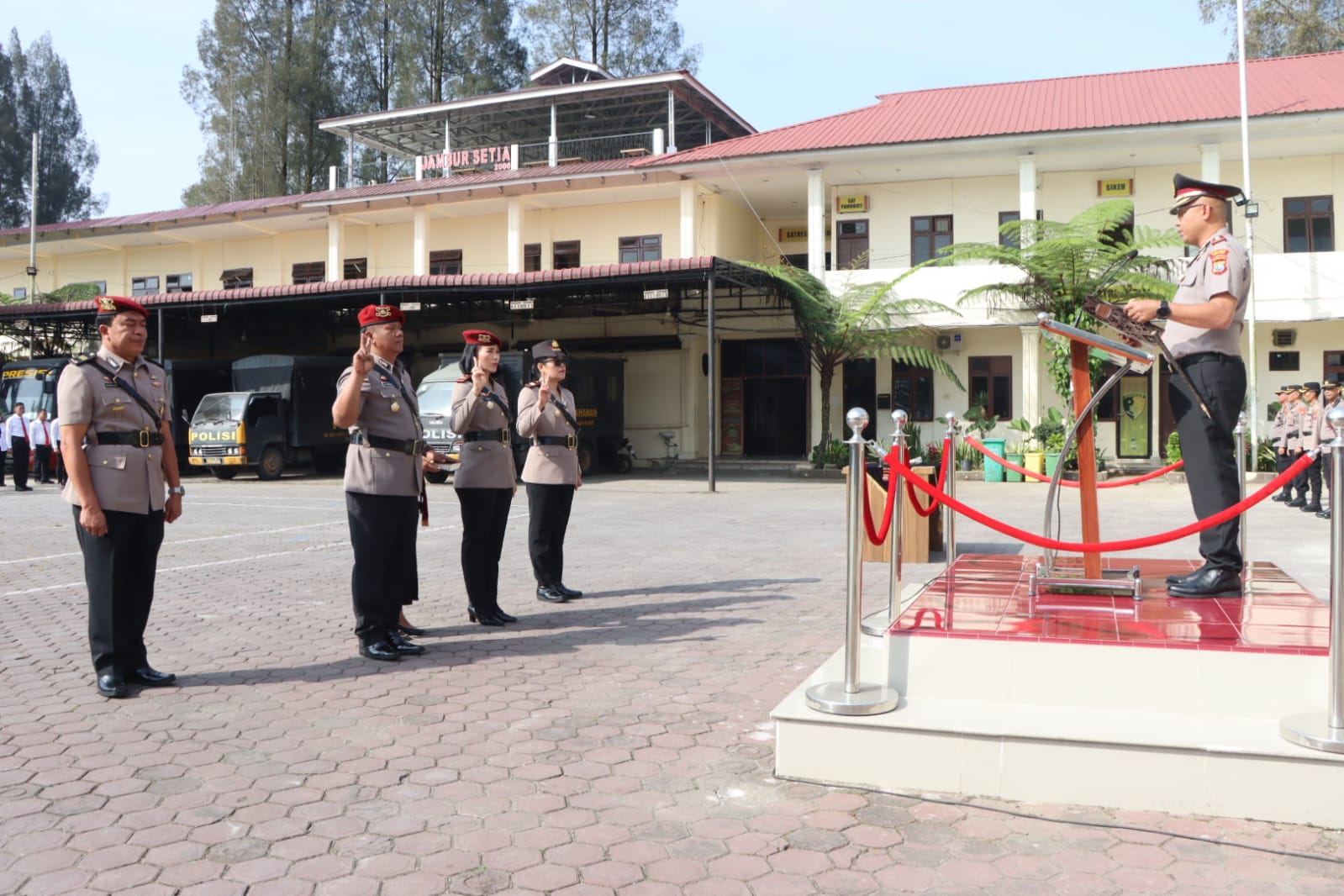 Upacara dimulai pukul 09.10 WIB dan berlangsung khidmat. Bertindak sebagai Inspektur Upacara Kapolres Tanah Karo AKBP Pebriandi Haloho, S.H., S.I.K., M.Si, dengan Perwira Upacara AKP Elva Hendrik Tarigan, S.H., serta Komandan Upacara IPDA Elwin Hutagaol, S.H.