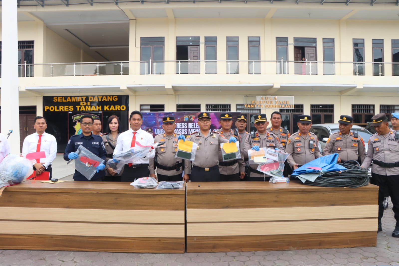 Karo | waspada24.com – Polres Tanah Karo menggelar press release pengungkapan sejumlah kasus menonjol sepanjang tahun 2025 hingga awal tahun 2026, Jumat (23/1) pukul 12.00 WIB. Kegiatan tersebut dipimpin langsung oleh Kapolres Tanah Karo AKBP Pebriandi Haloho, S.H, S.I.K, M. Si, didampingi para PJU dan Kapolsek jajaran, yang memaparkan capaian kinerja serta evaluasi penanganan kriminalitas di wilayah hukumnya.