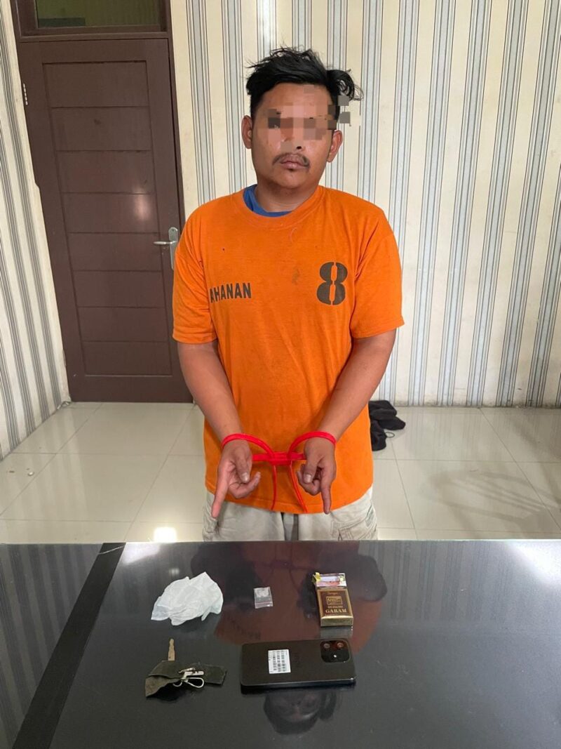 “Petugas melakukan penangkapan terhadap satu orang laki-laki dewasa, saat dilakukan penggeledahan, ditemukan barang bukti narkotika jenis sabu,” ujar Kasat, Kamis(29/1) pagi di Mapolres.