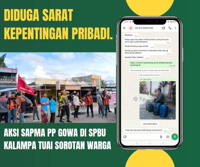 di mana kegiatan ini yang diduga kuat hanya untuk kepentingan pribadi salaseorang oknum yang tidak bertanggung jawab hingga harus mengorbankan sapma pp asal kabupten gowa untuk melakukan akshi di depan spbu kalampa kabupaten takalar