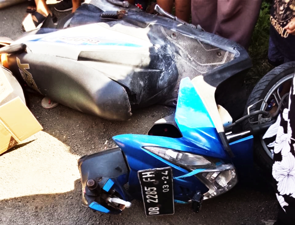 Situasi menjadi fatal lantaran pada saat yang bersamaan, sebuah truk Hino Light Truck bernopol DB 8557 CJ muncul dari arah berlawanan.