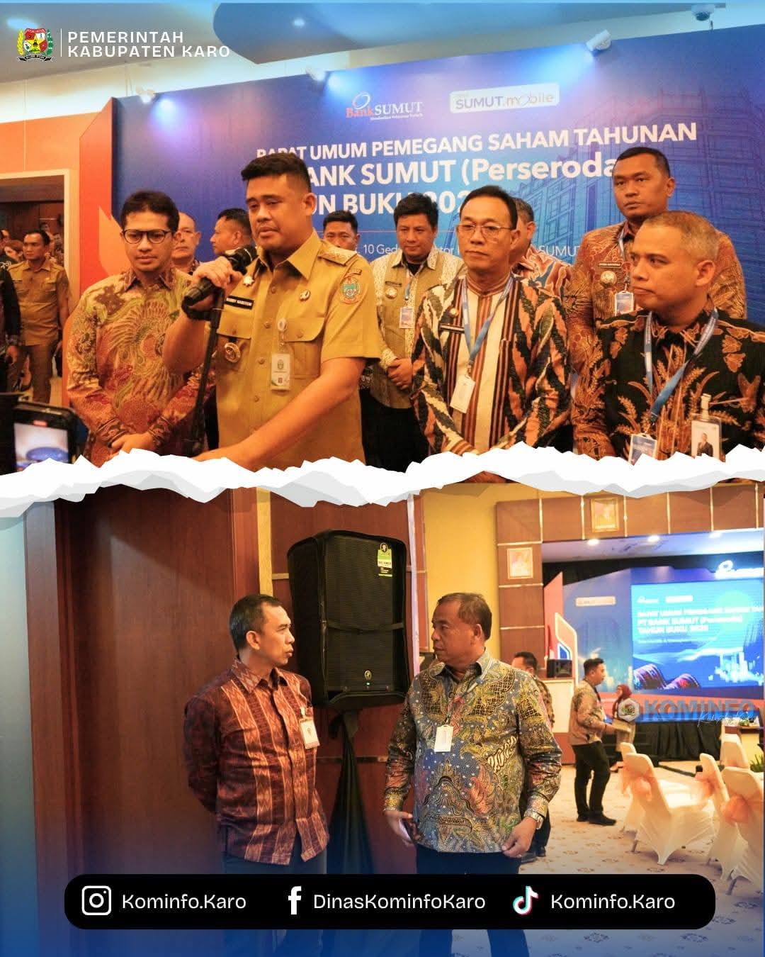 MEDAN | Waspada24.com – Bupati Karo, Brigjen Pol (Purn.) Dr. dr. Antonius Ginting, Sp.OG., M.Kes., didampingi Kepala Badan Keuangan dan Aset Daerah (BKAD) Kabupaten Karo, Sri Harmonista Br Kaban, ST, M.Eng., menghadiri Rapat Umum Pemegang Saham (RUPS) Tahunan Tahun Buku 2025 PT Bank Sumut. Acara digelar pada Senin (6/4/2026) di Aula Kantor Pusat Bank Sumut, Medan.