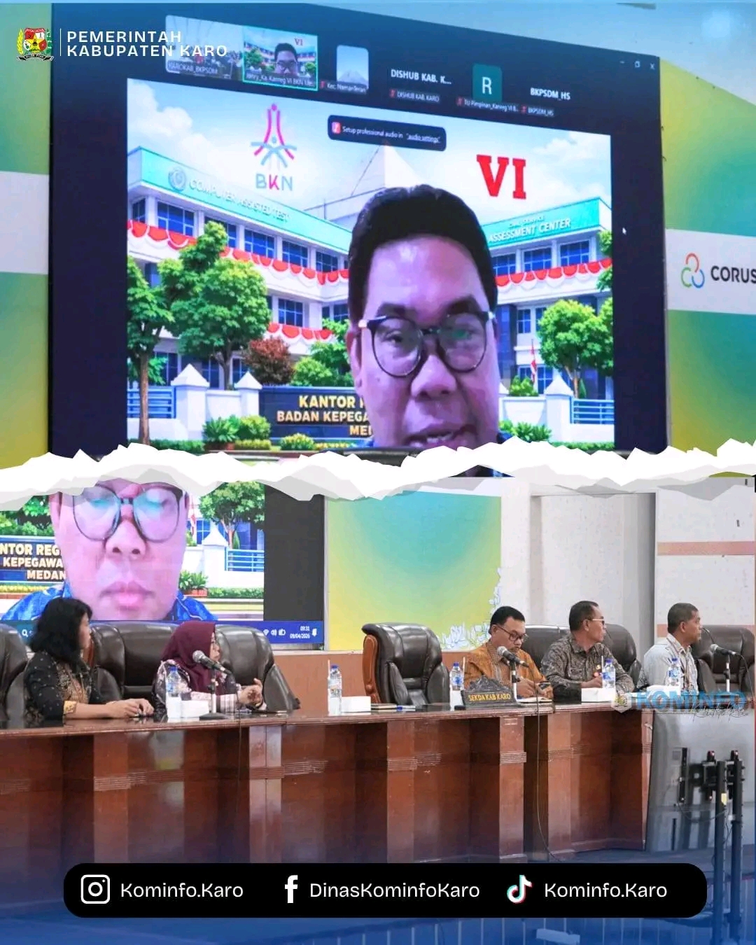 Kegiatan ini menjadi langkah strategis untuk memperkuat sistem manajemen kinerja yang terukur, profesional, dan berbasis teknologi digital. Sebagai narasumber utama, hadir Kepala Kantor Regional VI Badan Kepegawaian Negara (BKN), Dr. Janry H.U.P. Simanungkalit, S.Si., M.Si., yang memaparkan materi tentang integrasi manajemen kinerja organisasi dan ASN di Kabupaten Karo.