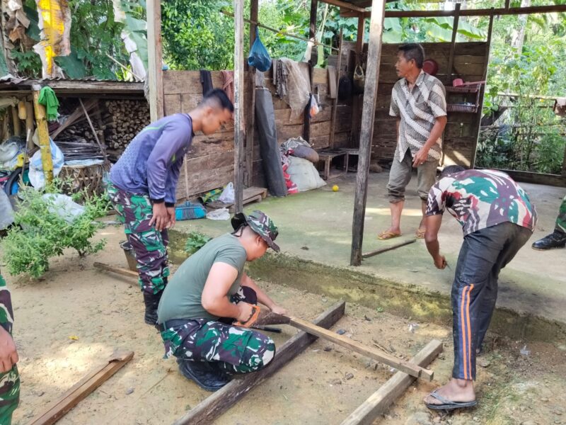 Sejak pagi, personel Satgas TMMD bersama warga bahu-membahu merobohkan bagian rumah yang telah lapuk. Tanpa sekat, mereka bekerja bersama, mempercepat tahapan awal rehabilitasi rumah tidak layak huni (RTLH) milik lansia tersebut.