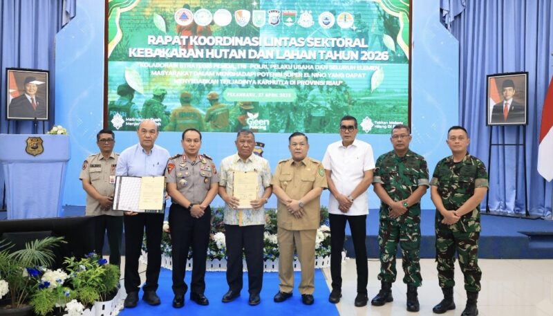 Antisipasi Karhutla 2026, Polda Riau dan Forkopimda Perkuat Sinergi Hadapi Ancaman El NinoEKANBARU – Polda Riau bersama Forum Koordinasi Pimpinan Daerah (Forkopimda) menggelar Rapat Koordinasi Lintas Sektoral Kebakaran Hutan dan Lahan (Karhutla) Tahun 2026 di Aula Tribrata Mapolda Riau, Senin (27/4/2026), sebagai langkah strategis memperkuat kesiapsiagaan menghadapi ancaman musim kemarau panjang akibat fenomena El Nino.