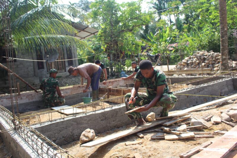 Salah satu titik yang menjadi fokus pengerjaan berada di Mushola Al Mukaramah Tengku Cik Raja Lim. Di lokasi tersebut, personel Satgas dan warga terlihat bahu-membahu menyelesaikan setiap tahapan pembangunan.