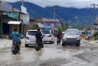 Kutacane, Aceh Tenggara – Kondisi ruas jalan di Desa Lawe Serke menuju Desa Suka Damai dan Lawe Sigala, Kecamatan Lawe Sigala Sigala, Aceh Tenggara,…